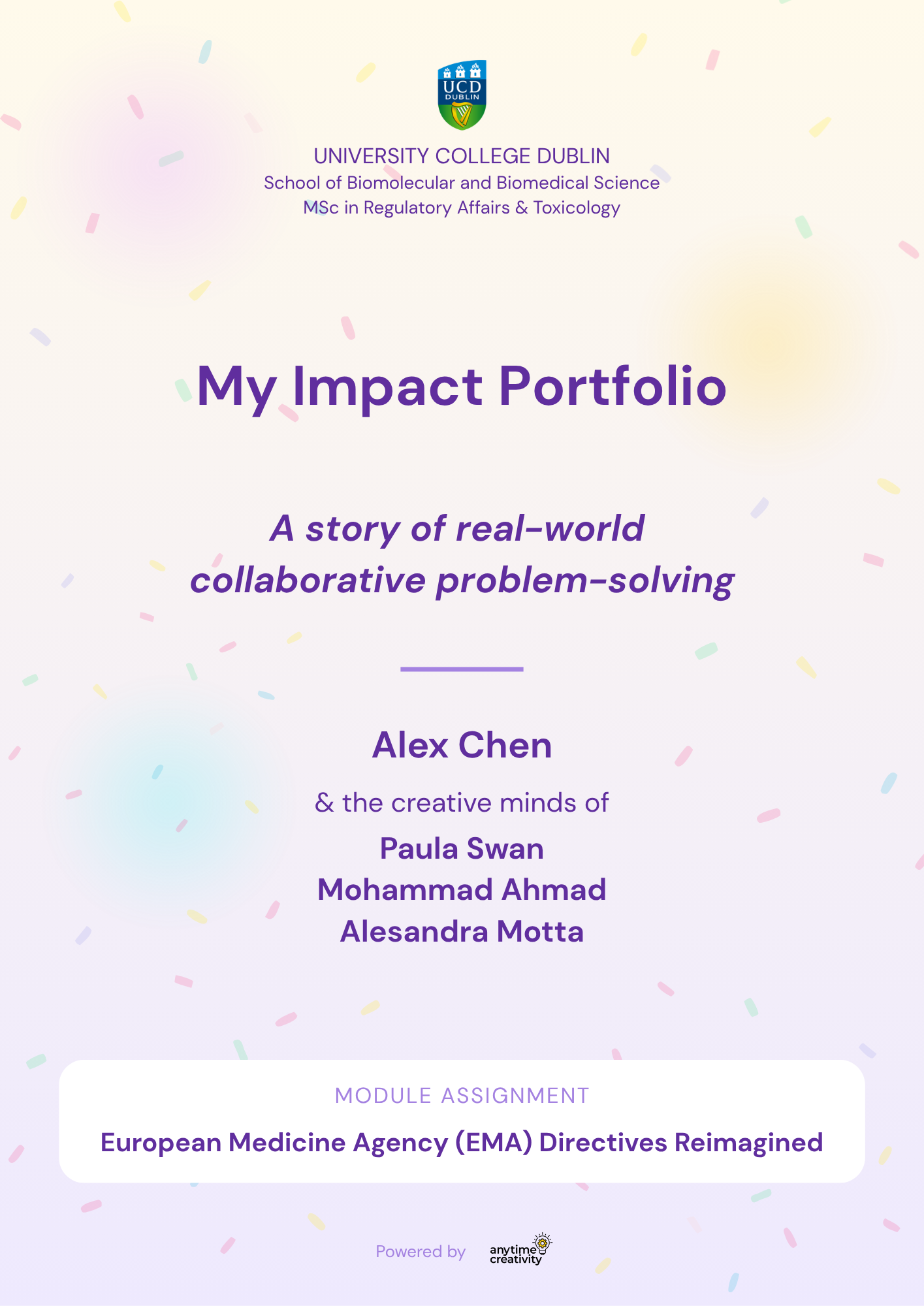 “We used Anytime Creativity within our immunotherapeutics class to challenge students in a way that went beyond traditional methods, fostering a deeper, more engaged learning experience. The platform allowed me to seamlessly integrate challenge-based learning into the module, encouraging collaboration, creative thinking and critical analysis.”